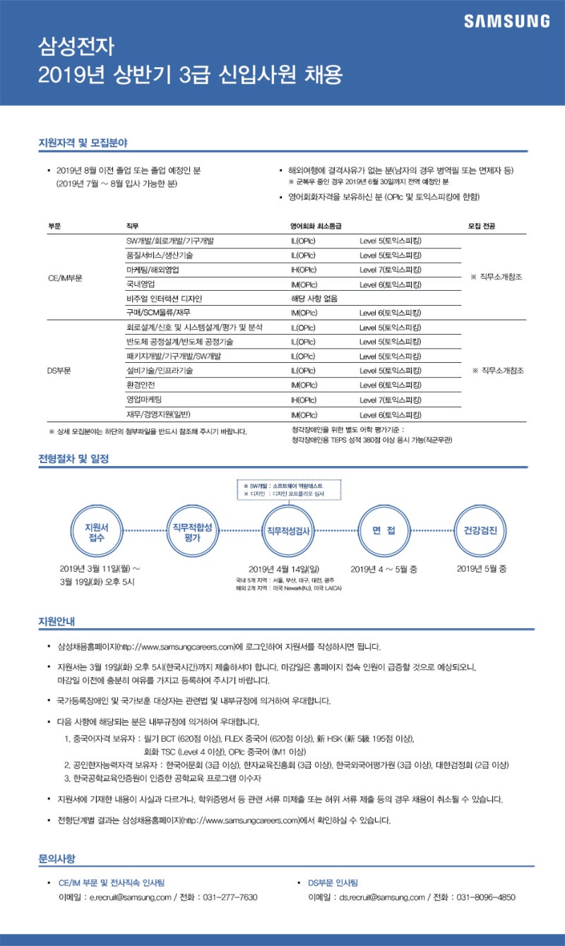 삼성전자 2019년 상반기 3급 신입사원 채용 공고 네이버 블로그